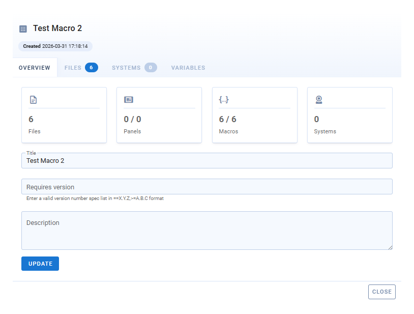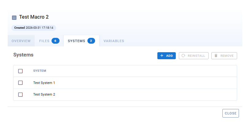 | After selecting one or more systems, click to reinstall the macro/panel on selected systems. | |