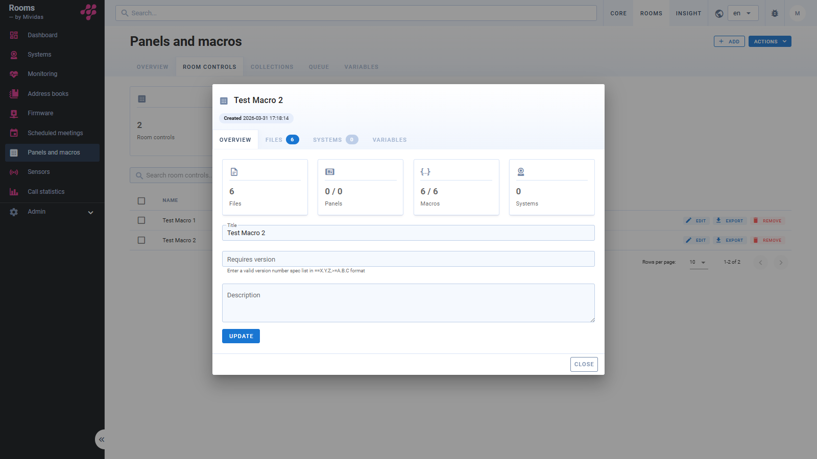 After you have created and uploaded panels and/or macros, you can edit them directly in Minidas Rooms.